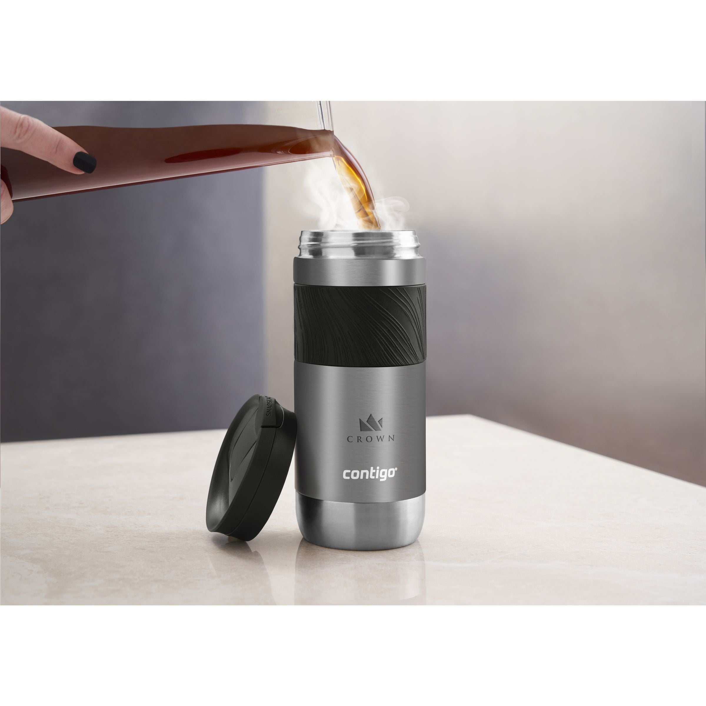 Doppelwandige rostfreie Edelstahl-Thermobecher: vakuumisoliert, versehen mit einem großzügigen, gummierten Antirutsch-Griff, Trinköffnung mit SNAPSEAL®-Technologie, macht das Trinken angenehm. Zum Trinken den Knopf mit einer Hand hochdrücken und zum Schließen des Bechers nach unten drücken. 100% auslaufsicher. Die THERMALOCK™-Technologie hält Getränke bis zu 18 Stunden kalt oder bis zu 7 Stunden warm. Nur der Deckel ist spühmaschinengeeignet (in der oberen Korb stellen). Spülen Sie den Becher mit der Hand. Fassungsvermögen 470 ml. LAGERBESTANDSINFORMATION: Bis zu 1.000 Stück innerhalb von 10 Arbeitstagen verfügbar. Ausnahmen vorbehalten. Contigo: der Spezialist bei Qualität, Design und Technologie. Direkt erkennbar an dem schlichten und zeitlosen Design - haltbar und robust. Die innovativen Contigo Wasserflaschen und Thermobecher sind geruchs- und geschmacksneutral und BPA-frei. Die Trinkflaschen sind mit einer Hand zu bedienen und garantiert tropfsicher, so ist die überall und jederzeit nutzbar. Mit 2 Jahre Herstellergarantie.