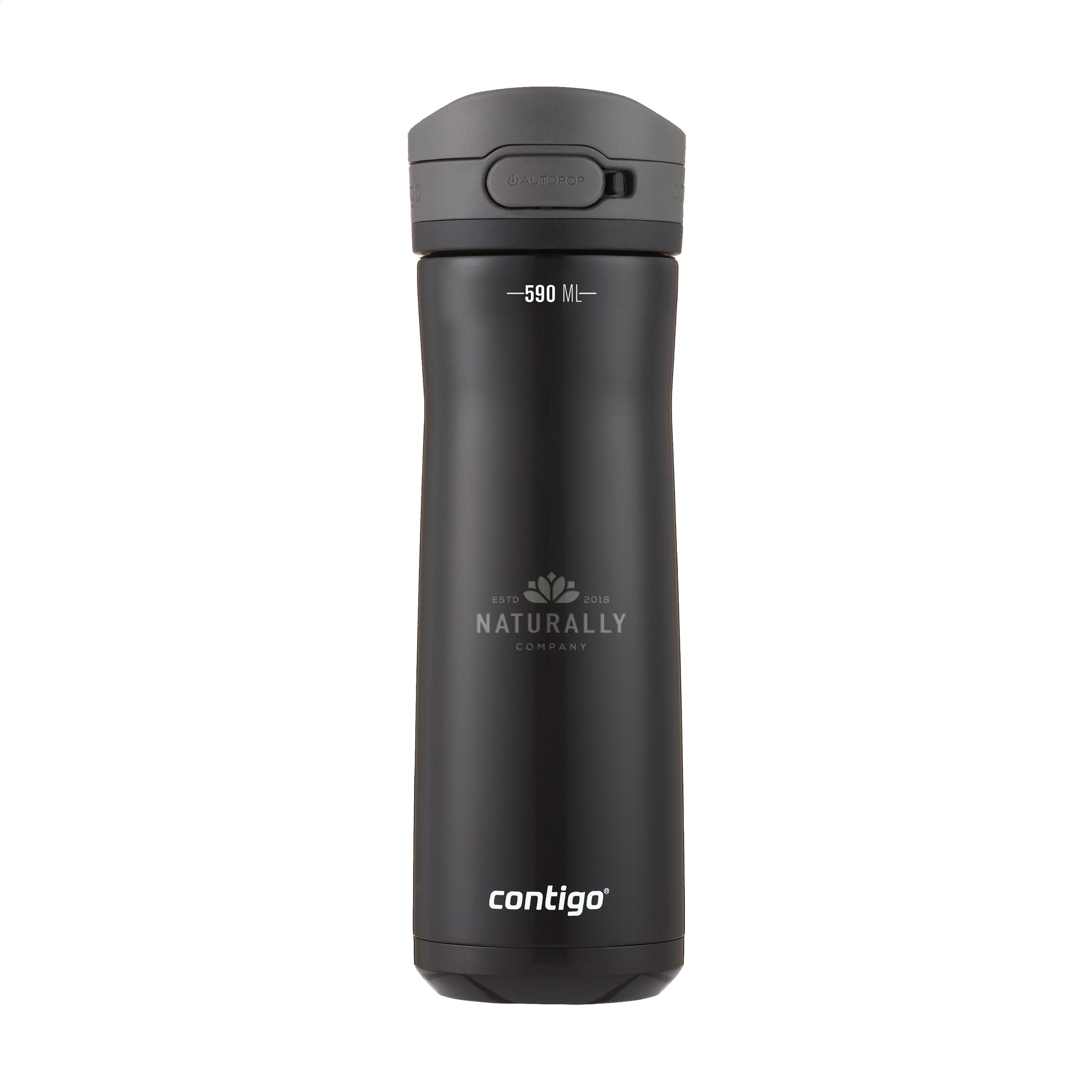 Doppelwandige, vakuumisolierte Contigo®-Wasserflasche aus Edelstahl mit AUTOPOP®-Technologie. Der Trinkverschluss ist geschlossen und somit vor Schmutz und Mikroben geschützt. Die Flasche ist nur für kalte, nicht karbonisierte Getränke geeignet. Diese bleiben bis zu 24 Stunden kalt. Dank des auslaufsicheren Designs verschüttest du nichts in deinem Auto, auf deinem Schreibtisch oder wo auch immer du bist. Mit dem integrierten Griff lässt sich die Flasche leicht transportieren. Passt in die meisten Getränkehalter. Die Flasche und der Deckel sind spülmaschinengeeignet (im oberen Korb stellen). Um den Aufdruck zu erhalten, wird Waschen von Hand empfohlen. Fassungsvermögen 590 ml. LAGERBESTANDSINFORMATION: Bis zu 1.000 Stück innerhalb von 10 Arbeitstagen verfügbar. Ausnahmen vorbehalten. Contigo: der Spezialist bei Qualität, Design und Technologie. Direkt erkennbar an dem schlichten und zeitlosen Design - haltbar und robust. Die innovativen Contigo Wasserflaschen und Thermobecher sind geruchs- und geschmacksneutral und BPA-frei. Die Trinkflaschen sind mit einer Hand zu bedienen und garantiert tropfsicher, so ist die überall und jederzeit nutzbar. Mit 2 Jahre Herstellergarantie.