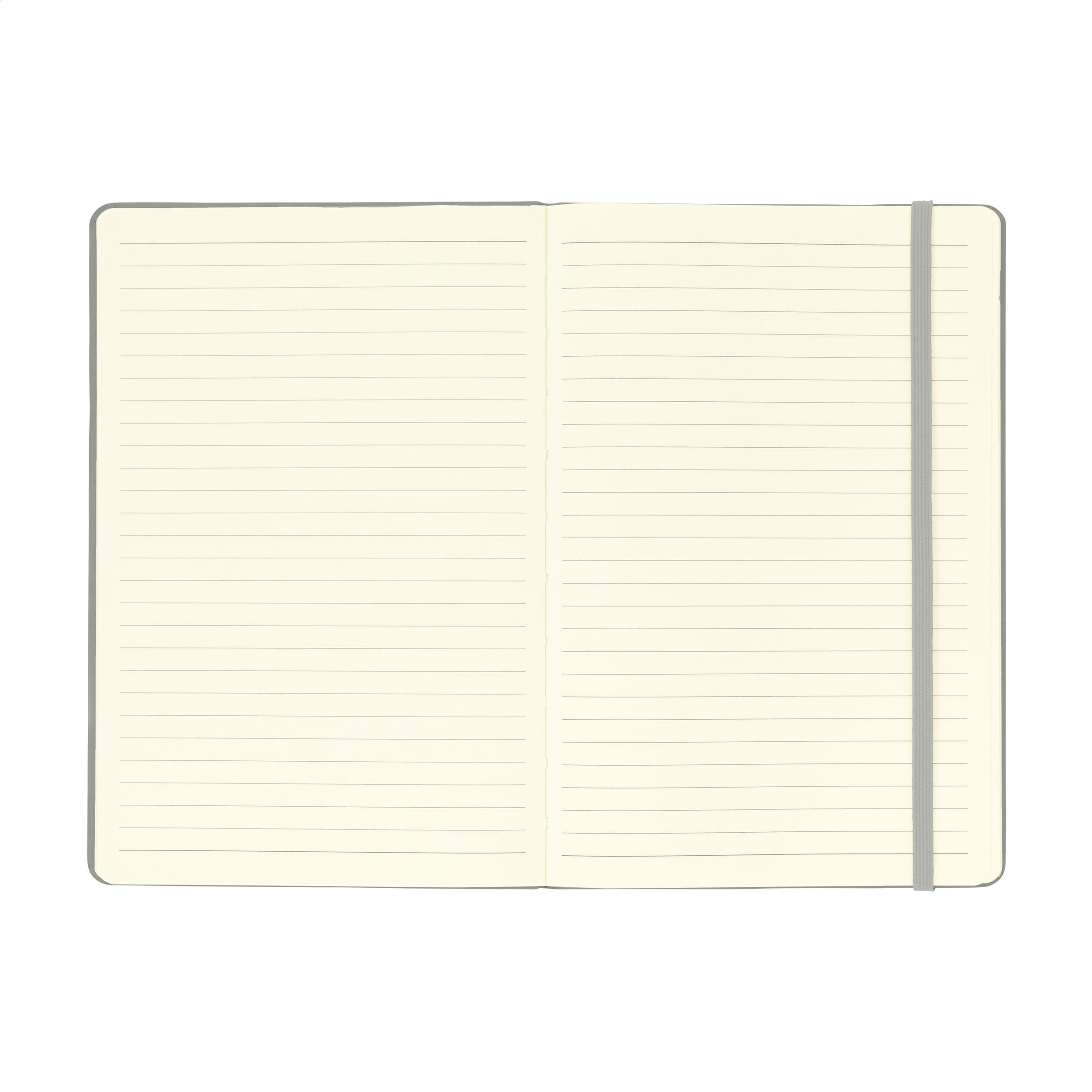 WoW! A5-Notizbuch mit Hardcover aus FSC Mix zertifiziertem Karton. Das Notizbuch umfasst ca. 80 Blatt/160 Seiten cremefarbenes, liniertes FSC Mix zertifiziertes Papier (70 g/m²). Mit gebundenem Buchrücken und praktischem Gummiverschluss.
