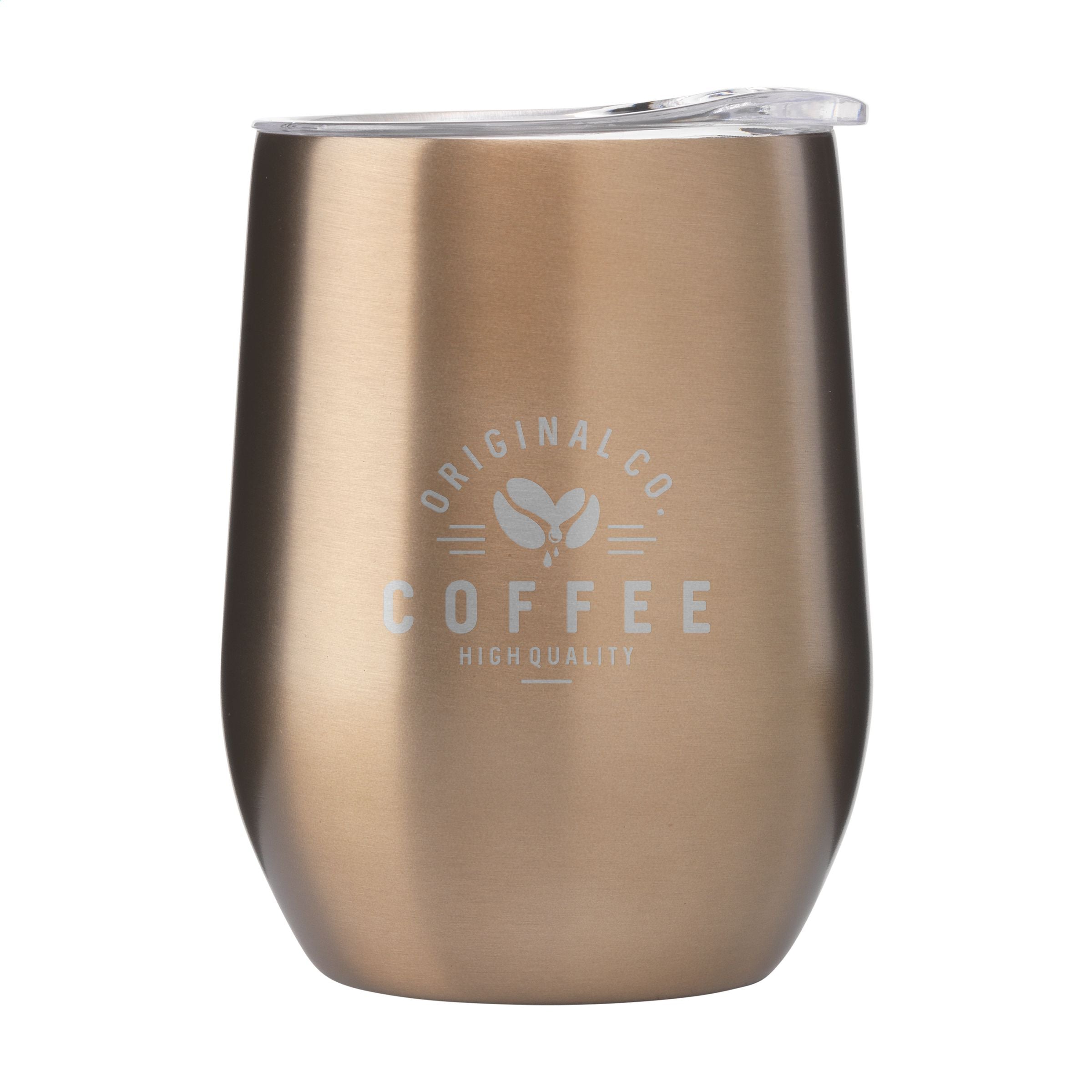 WoW! Doppelwandiger Trinkbecher. Die Innen- und Außenwände sind aus recyceltem Edelstahl gefertigt. Dadurch bleiben heiße Getränke länger auf der richtigen Temperatur. Durch sein besonders schönes Design und die attraktive matte Oberfläche fällt der Becher sofort auf. Der transparente Aufsteckdeckel aus Kunststoff ist mit einer verschließbaren Trinköffnung versehen. Nicht spülmaschinengeeignet. Fassungsvermögen 350 ml. RCS-zertifiziert. Gesamtes recyceltes Material: 83%. Wird einzeln in einem Kraftkarton geliefert.