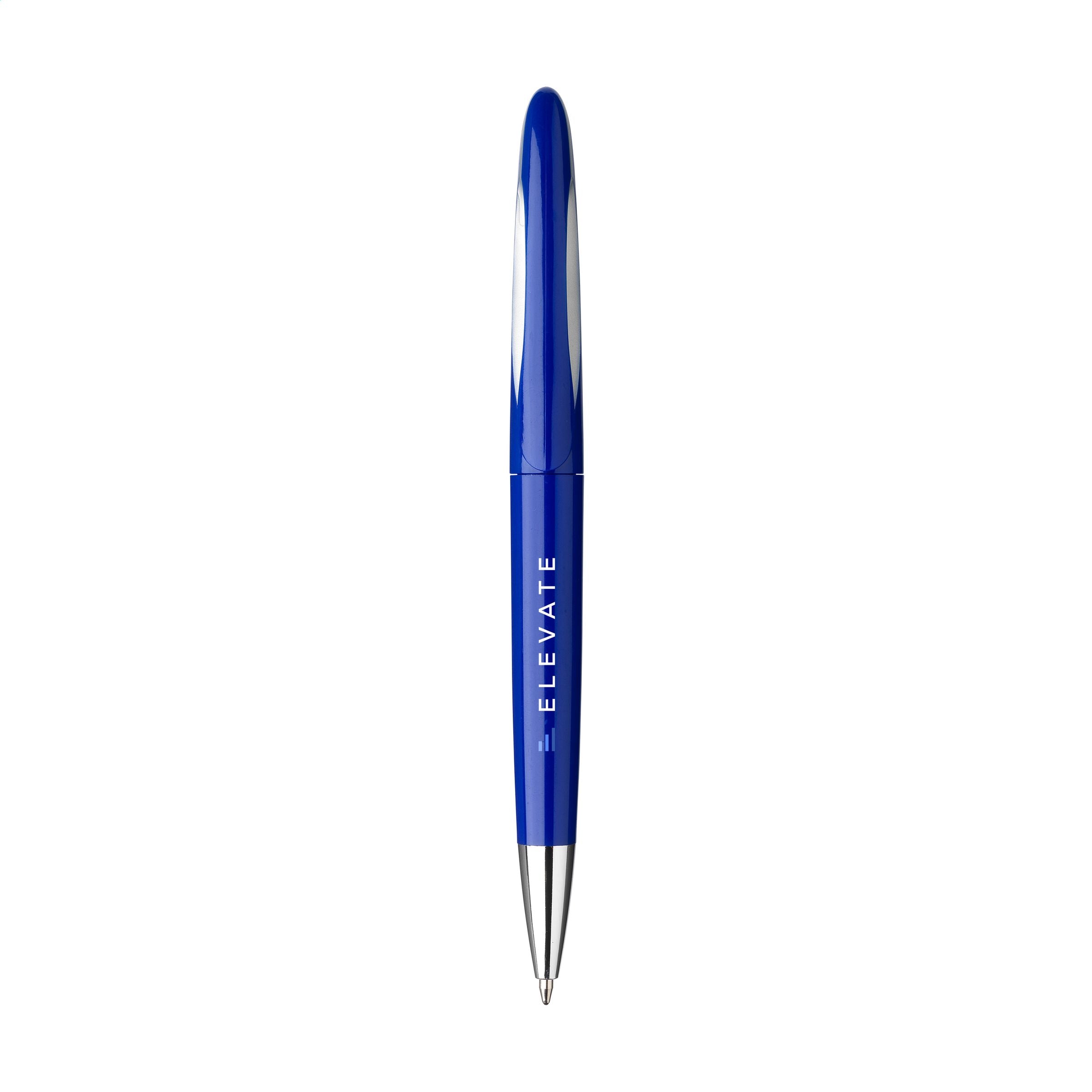 WoW! Blauschreibender Kugelschreiber aus recyceltem ABS. Mit formschönem Clip und Dreh-Klicksystem. Recyceltes Material insgesamt: 70%.